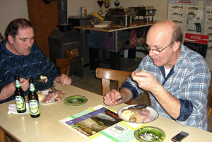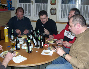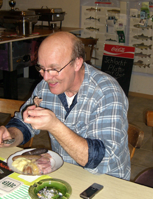 Zum Schlachtessen hatte der Verein für den 5. Februar ab 18.00 Uhr in die Anglerhütte nach Bisses eingeladen. 15 Vereinsmitglieder ließen sich die Gelegenheit nicht entgehen und konnten sich an einer Schlachtplatte vom Feinsten mehr als satt essen. So manche Flasche kühles Bier half dabei das Essen gut zu verdauen. Alle Anwesenden war sich einig, dass dieser gemütliche Abend mit dem leckeren Schlachtessen als fester Bestandteil in die jährliche Terminplanung aufgenommen werden sollte.